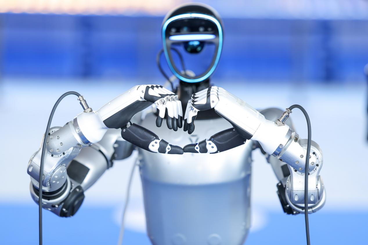 人形机器人用双臂摆出爱心造型。新华网发(大赛组委会供图)