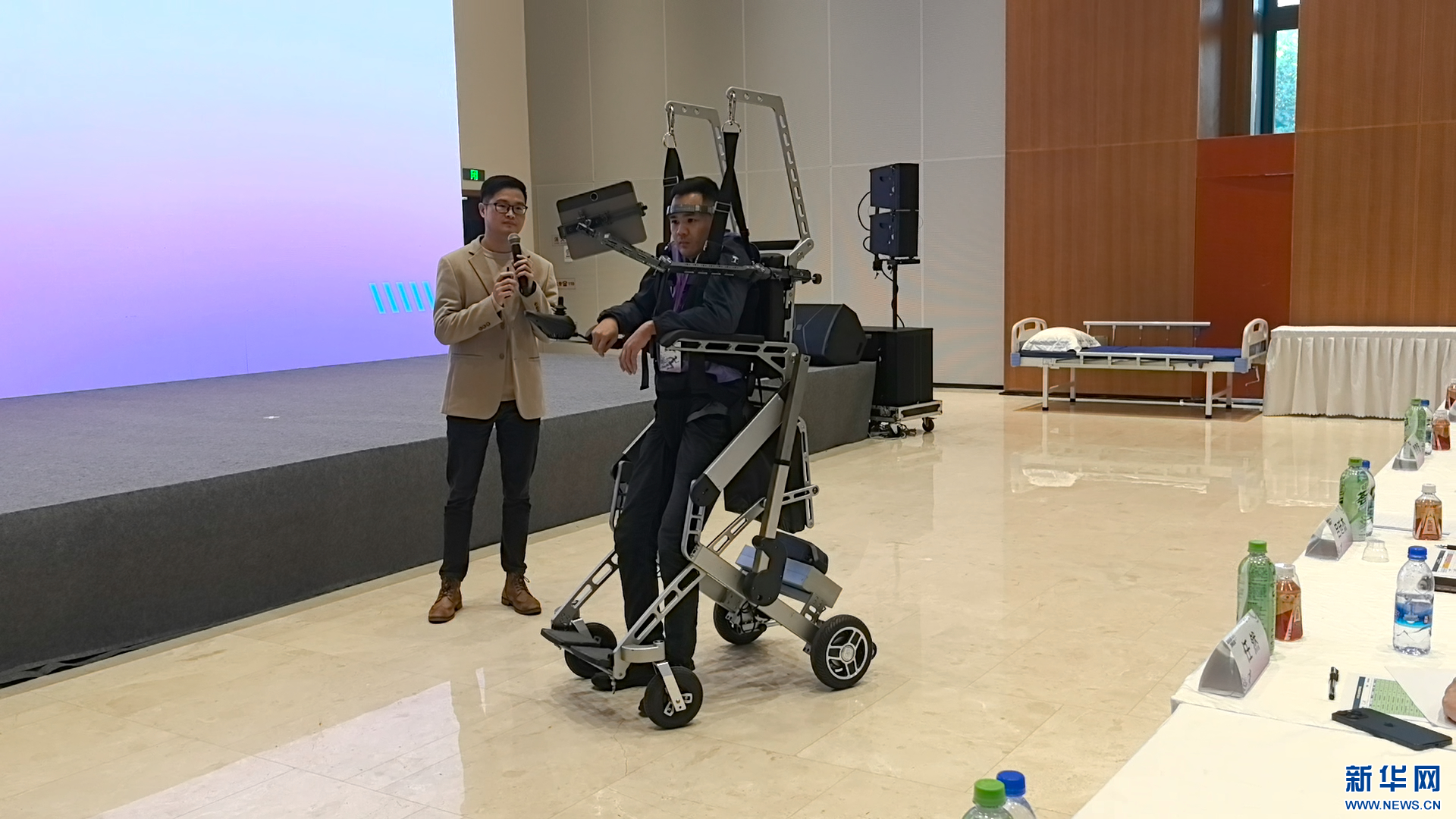 选手正在演示“脑机行走机器人”。新华网 魏晓航 摄