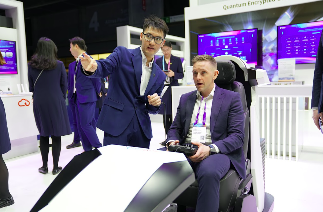 在MWC Connected Industries展馆4F10的中国电信展位,来自世界各地的人群络绎不绝涌入其中,中国电信接待了众多来自世界各地的观众,并就展馆内三大版块为观众进行了详细的讲解。