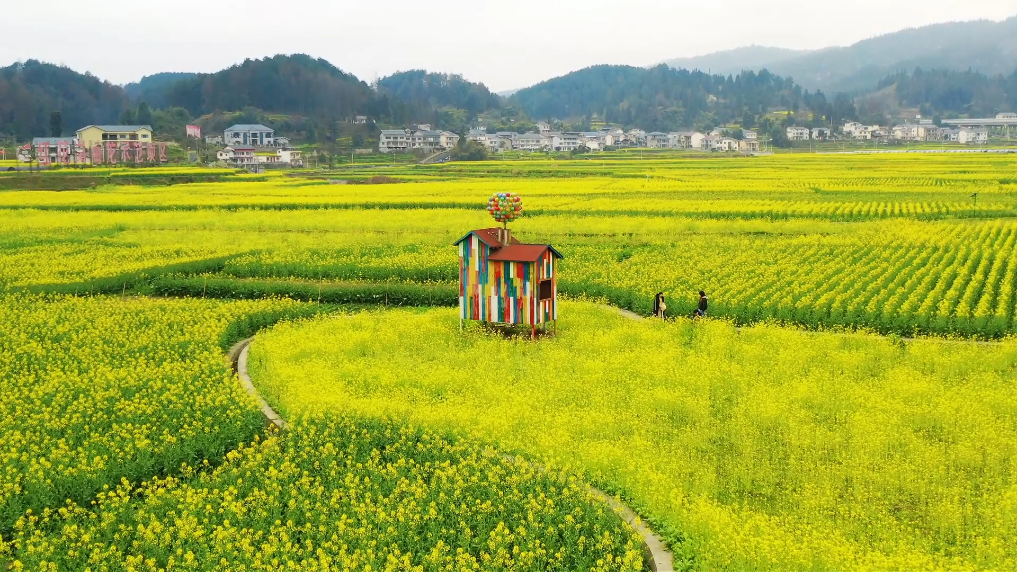 近日,位于贵州省遵义市红花岗区海龙镇的千亩油菜花竞相绽放,金黄的花海与青山交相辉映,吸引不少游客前来踏青赏花,尽享春日田园风光。