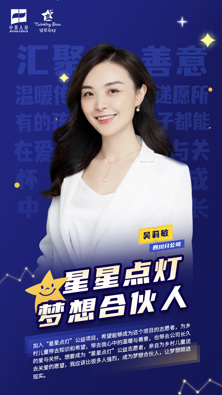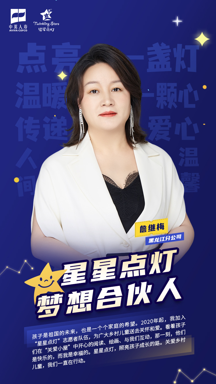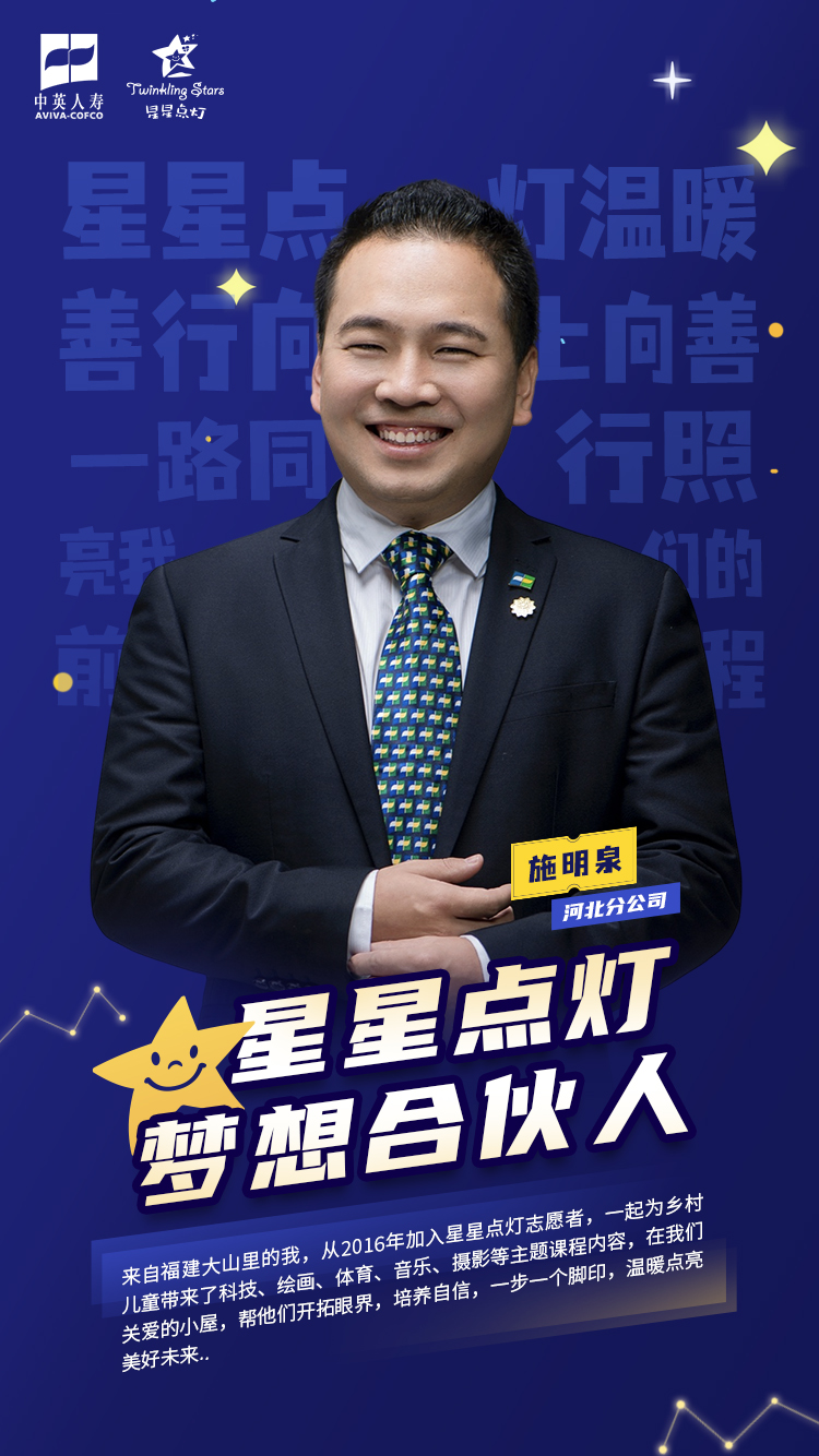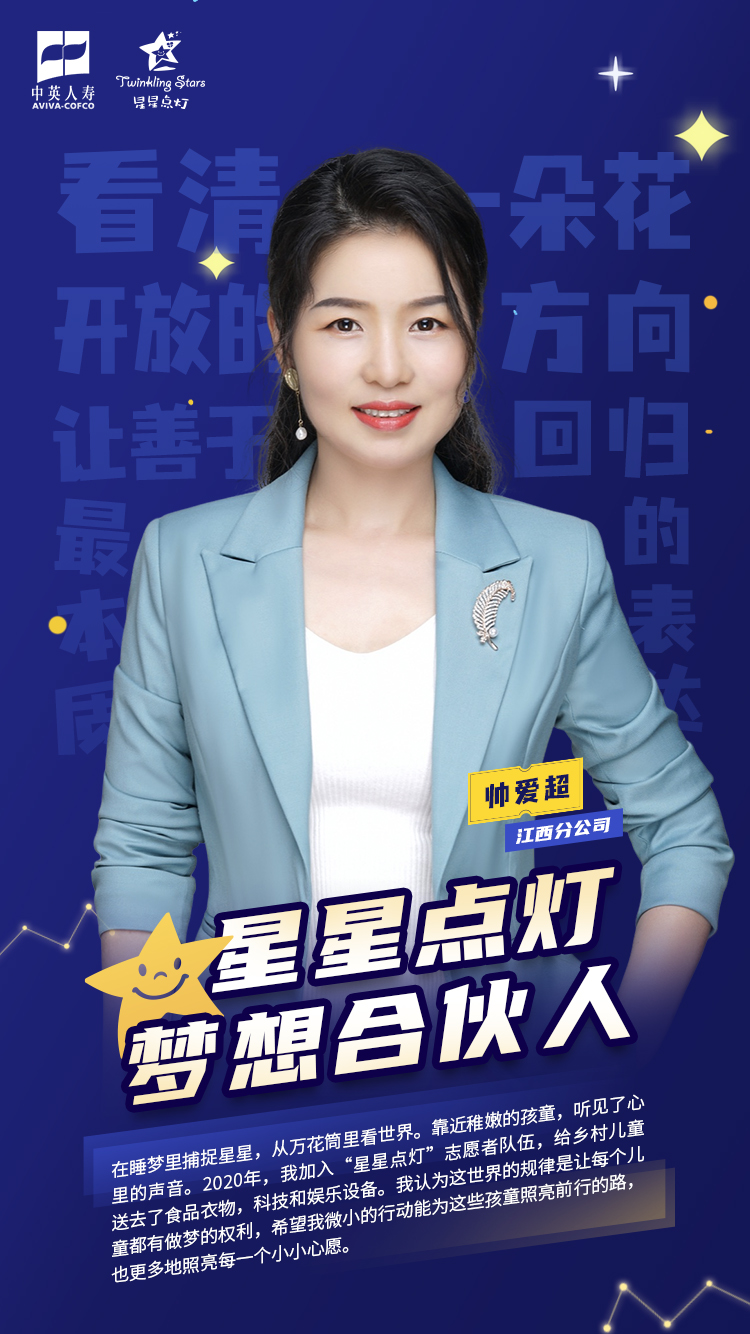 13年持续关注儿童公益、帮扶乡村儿童15万名、累计建设“关爱小屋”30多所 中英人寿在双方股东的大力支持下,借鉴英方股东英杰华集团“从街道重返校园计划”的运作经验,结合中国社会留守儿童的实际情况,于2010年创新发起“星星点灯·关爱儿童公益计划”。目前系列活动已覆盖北京、河北、湖南、辽宁、湖北、河南、山东、四川、江苏、福建、黑龙江、广东、安徽以及江西14个省市。 今年“星星点灯”公益项目以“守护梦,向爱行”为主题,持续秉承“关爱万家”的企业愿景,从扶贫、扶志、扶心三大维度,扩展“星星点灯”公益项目关爱儿童的帮扶网络,从乡村儿童拓展至“大病儿童”及“城市困境儿童”,从身体健康、心理健康、筑梦造梦三个方面,守护儿童成长。我们通过扶贫面向“大病儿童”开展大病救助,保障儿童身体健康;通过扶心面向“乡村儿童”开展志愿者支教活动,守护儿童心灵成长;通过扶志,以“航天梦启迪儿童梦”。今年的“星星点灯”,将从物质上的帮助以及精神上的关爱,为儿童点亮希望之光,将温暖普惠更多儿童。