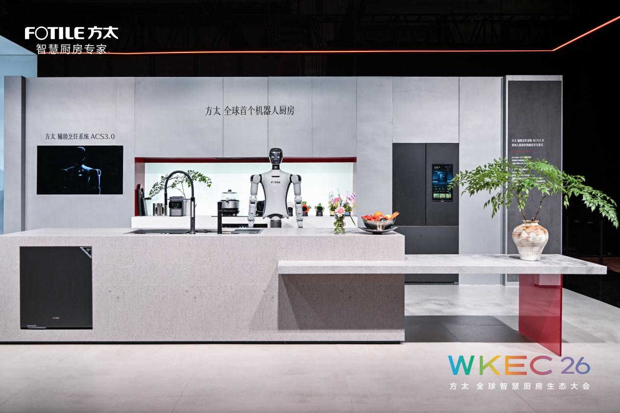 基于这一系统能力,方太在生态大会现场正式发布了方太全球首款机器人厨房。它搭载业界首套“成长型”厨房具身智能系统,由异构机器人矩阵构成:高精度机械臂负责杯具定位、接水乃至精细的洗碗机餐具摆放;人形机器人则完成倒油、翻炒、盛菜等复杂烹饪操作。从烹饪到清洁,全链路实现无人化作业,为人机共创的厨居生活开启无限可能,更为连接更广阔的外部世界奠定了能力基础。