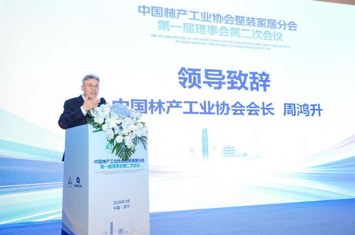 中国林产工业协会会长周鸿升提到,整装家居分会自2025年成立以来,在理事单位、行业伙伴的共同努力下,持续为消费者提供更优质的家装服务。周鸿升呼吁与会者加强交流协作,为2026年行业破局出谋划策,推动整装家居产业实现高质量发展。