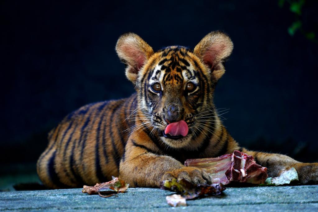 2021年8月31日,生活在上海动物园的一只小华南虎。新华社记者 张建松摄