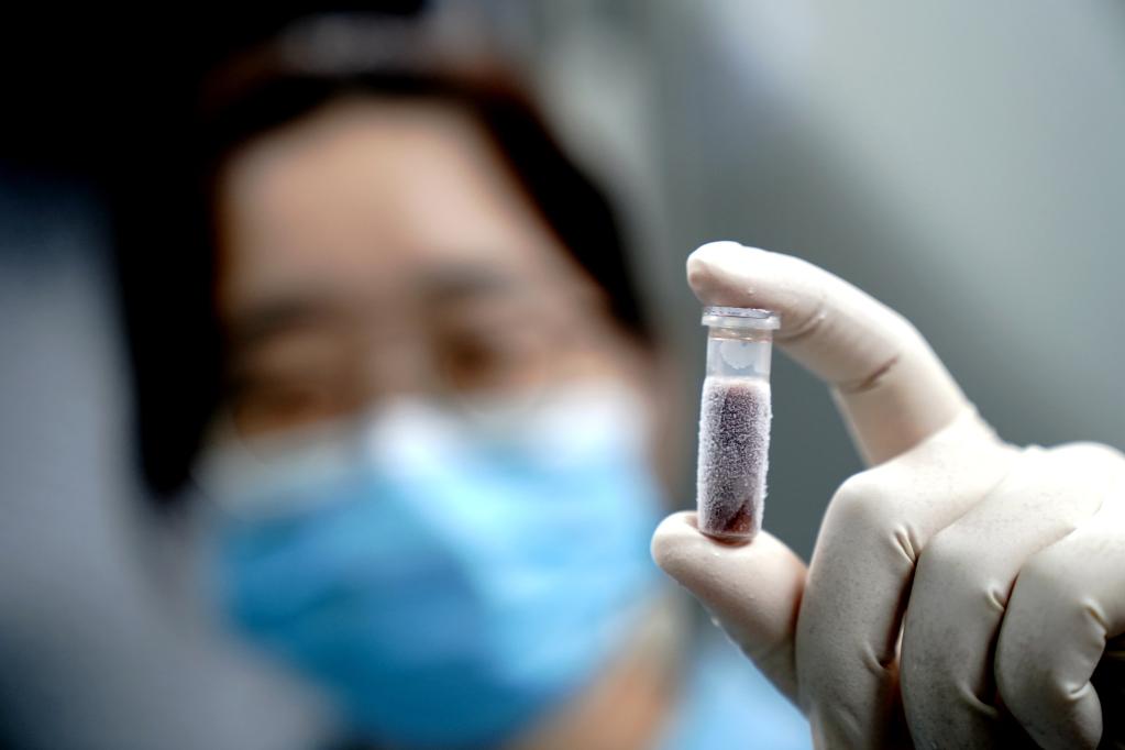 2021年10月11日,上海动物园科研人员展示冷冻保存的华南虎基因样品。新华社记者 张建松 摄
