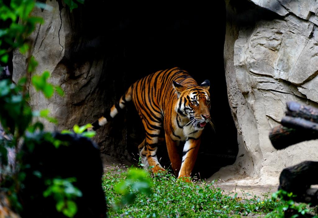 2021年10月11日,在上海动物园拍摄的一只华南虎。 新华社记者 张建松摄