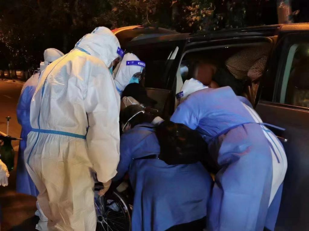 转运组连夜开展转运工作,将转运对象运送至隔离点。(北京市丰台区玉泉营街道供图)