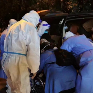 转运组接到调度安排,立即调配人员安排送医事宜。当晚8时许,街道经济发展办副主任尹志田和工作人员王子舰身穿白色防护服,驱车抵达患者所在的小区门口,确认患者及家属身份后,火速开往医院。