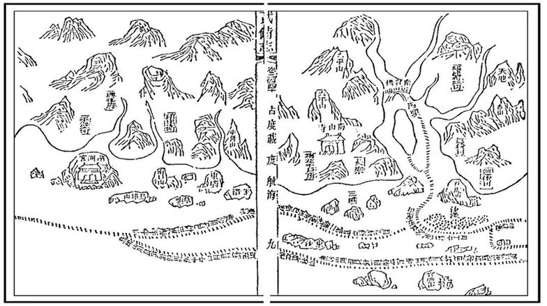 ▲明茅元仪《武备志》所载的《郑和航海图》附有四幅“过洋牵星图”,上图为最末一幅。(图片来源:金陵郑和纪念馆微信公众号)