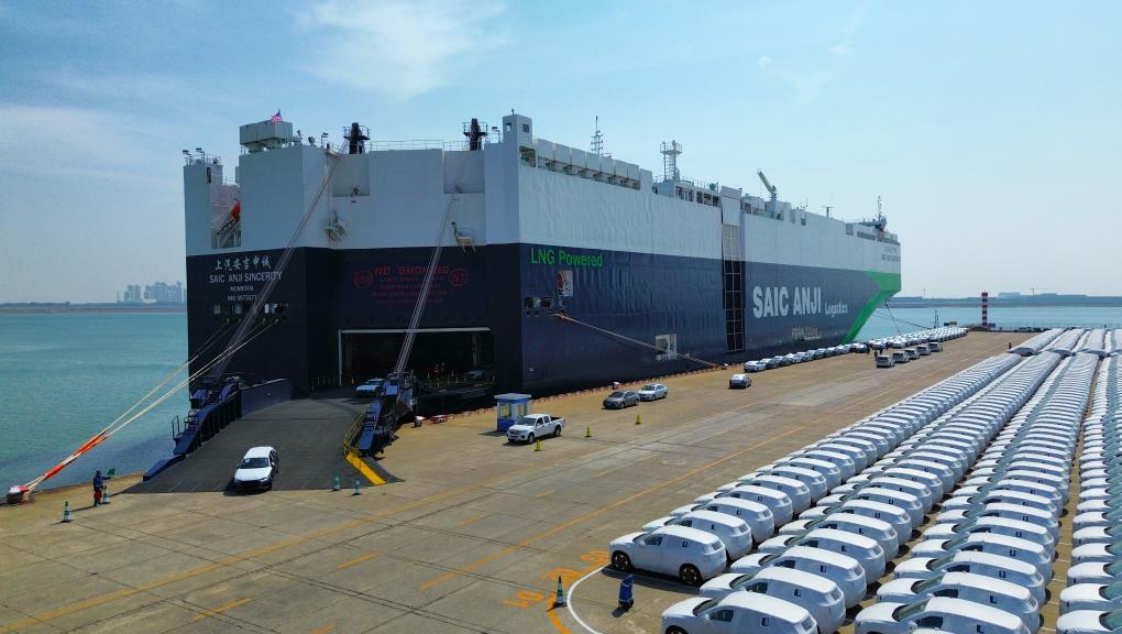 2024年5月9日,“上汽安吉申诚”号远洋汽车滚装船顺利靠泊环球滚装码头。(受访单位供图)