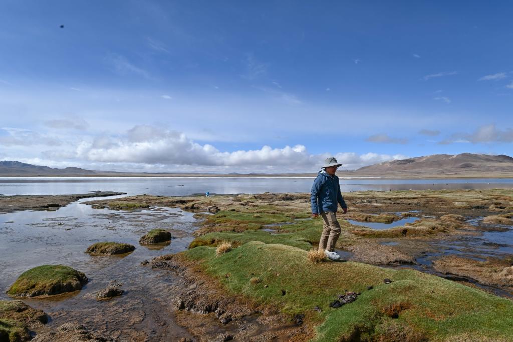 5月26日,班德湖野生动物观测站站长张锡荣在湖边巡护。新华社记者 张龙 摄