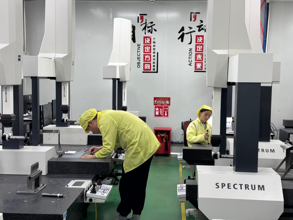 1月2日,通达(厦门)精密橡塑有限公司车间内,进厂务工的年轻人正在对产品进行测量。新华社记者颜之宏 摄