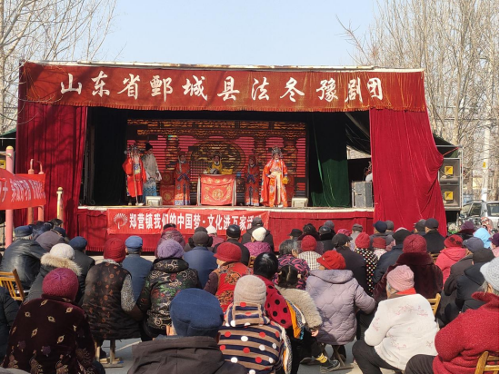 为丰富基层群众精神文化生活,近日,山东省鄄城县郑营镇联合县文化馆先后在冯庄、前董湖、西于庄村举办“我们的中国梦·文化进万家”——送戏下乡文艺演出活动。演出现场热闹非凡,传统的细腻唱腔、演员们惟妙惟肖的表演让台下群众大呼过瘾,大家纷纷拿出手机记录精彩瞬间。截至目前,已举办送戏下乡活动22场,观看群众3000余人,累计发放文化惠民、文明新风、普法宣传等资料500余份,收集群众文化需求与建议30余条。
