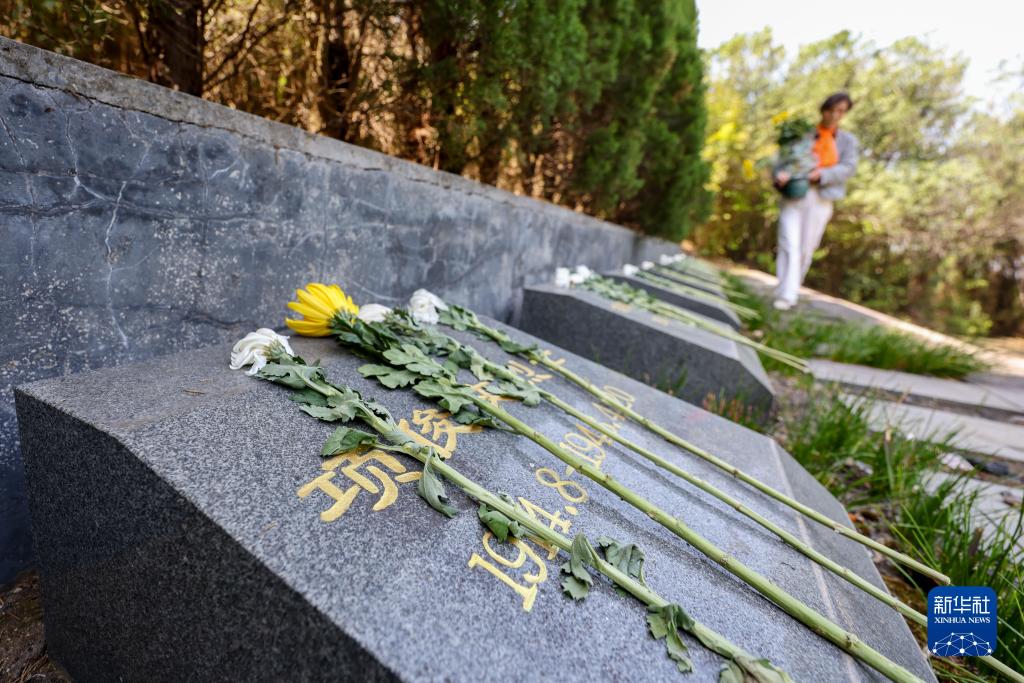 2025年4月2日,在浙江省金华市孝顺革命烈士陵园,雷烨的外甥女项碧英前往祭扫雷烨。在孝顺革命烈士陵园,当地政府用雷烨的原名项俊文竖立墓碑。“项俊文”这三个字,永远镌刻在了“孝顺镇革命烈士英名录”的石碑之上。新华社记者 刘金海 摄