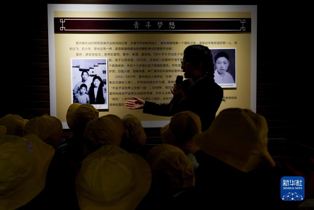 清明节前,当地幼儿园的小朋友们来到浙江省金华市金东区孝顺镇新后项村参观雷烨故居(2025年4月2日摄)。新华社记者 刘金海 摄