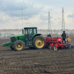 由北林区向北170多公里,在黑龙江省北安市境内的北大荒集团建设农场有限公司,农机手许呈浩正和工友们一起为播种机更换第二代大豆根瘤菌剂喷施中控箱。“今年升级的中控箱里除了菌剂罐,还增加了气泵,如果喷口发生堵塞,可以用气泵直接吹开。”许呈浩说,这台气吹式电控播种机作业十分精准,能把种子按照预设深度精准“打进”土壤。