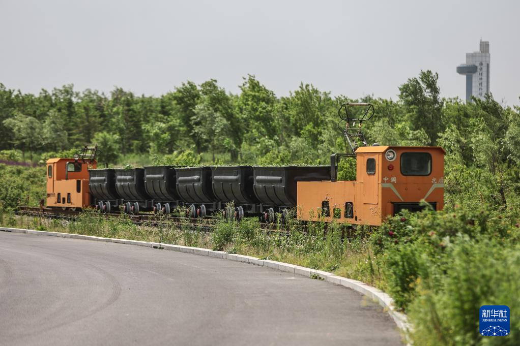 乘车顺着抚顺西露天矿内的道路盘旋而下,来到矿坑的回填作业区。记者看到,载满泥土的电机车正通过电铁线路穿梭。据介绍,经由这条铁路,抚顺东露天矿生产出的渣土及富含营养物质的种植用土依次补充到西露天矿矿坑内,并通过相应的物理或化学措施对土壤进行育肥,栽种各类树木,让矿山复绿。