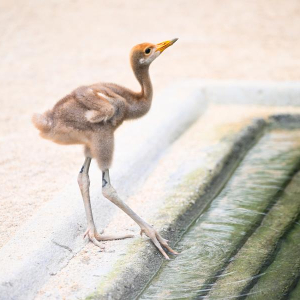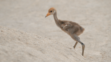 6月7日在江苏盐城湿地珍禽国家级自然保护区拍摄的丹顶鹤幼雏。