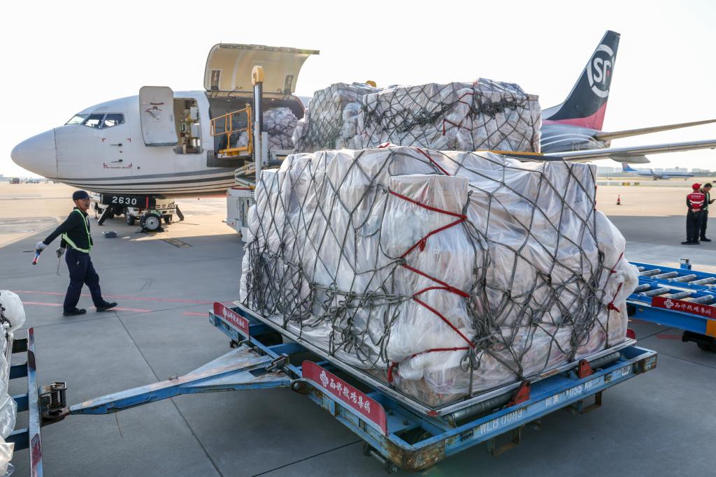 近十三吨最大限度保留着鲜度与风味的岭南荔枝装载进全货机机舱。