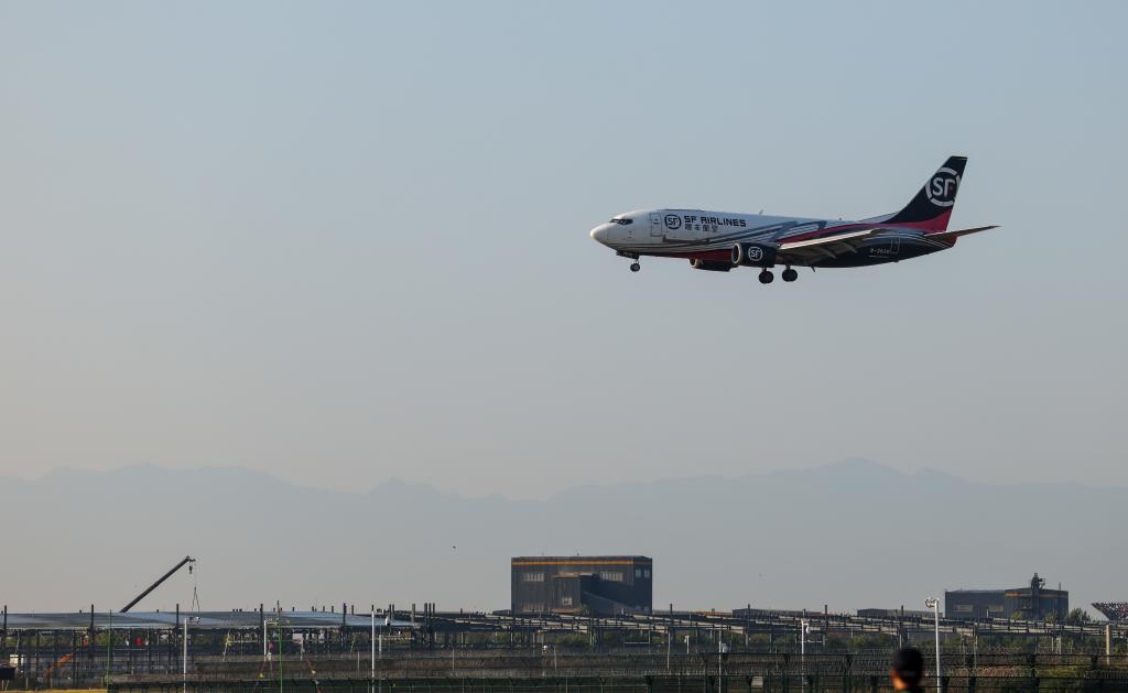 6月29日,搭载着荔枝的航班准备降落西安咸阳国际机场。