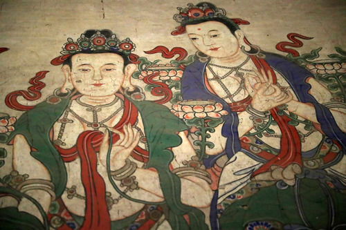 这是在张掖大佛寺大佛殿内拍摄的壁画。马希平摄