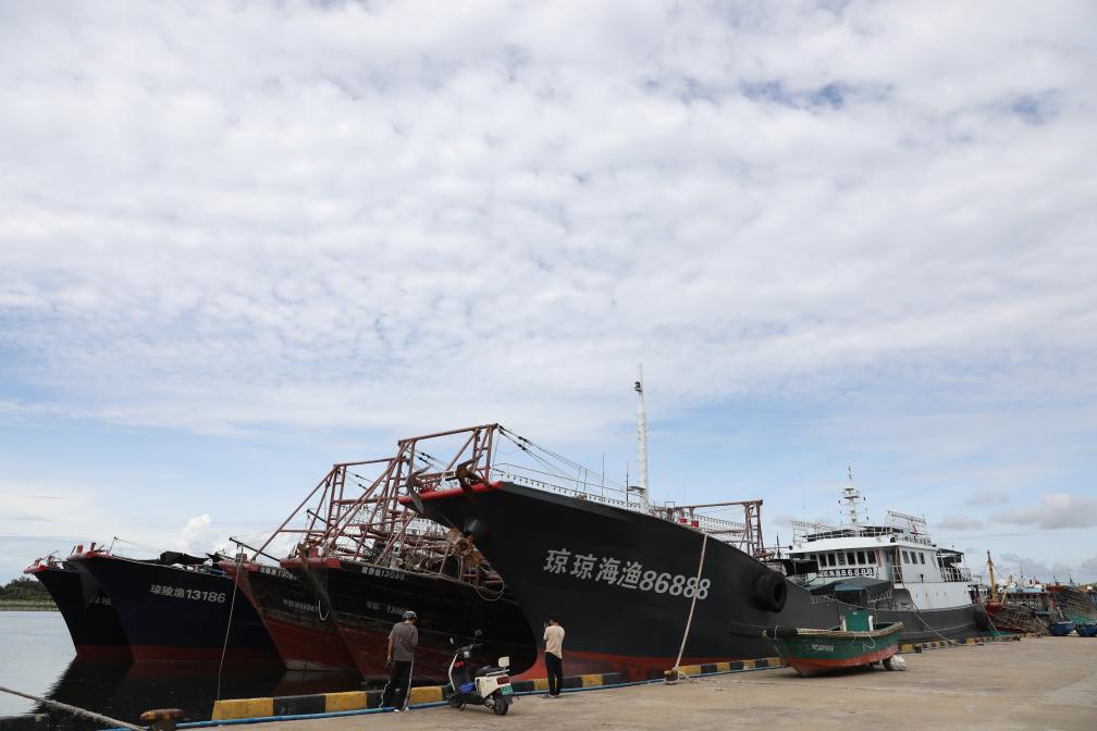7月24日,在海南省琼海市潭门镇,人们在渔船边。