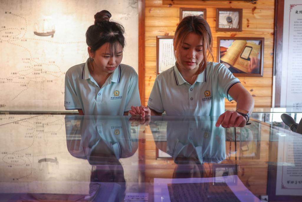 7月31日,游客在海南省琼海市更路簿博物馆内参观。