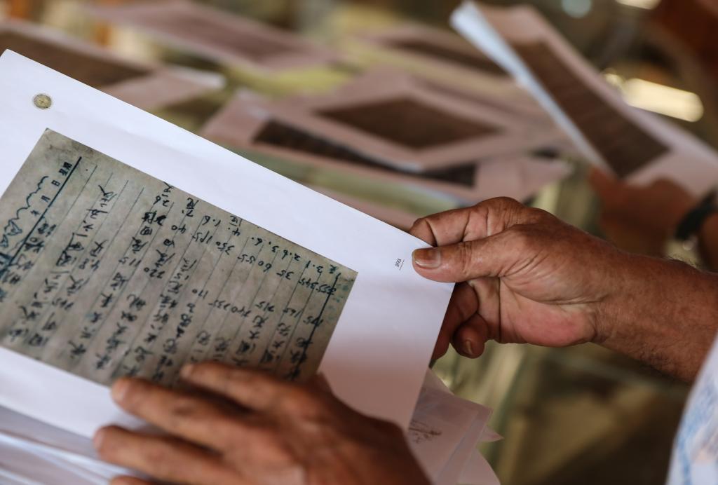 7月22日,在海南省琼海市更路簿博物馆内,王书保整理更路簿复印件。