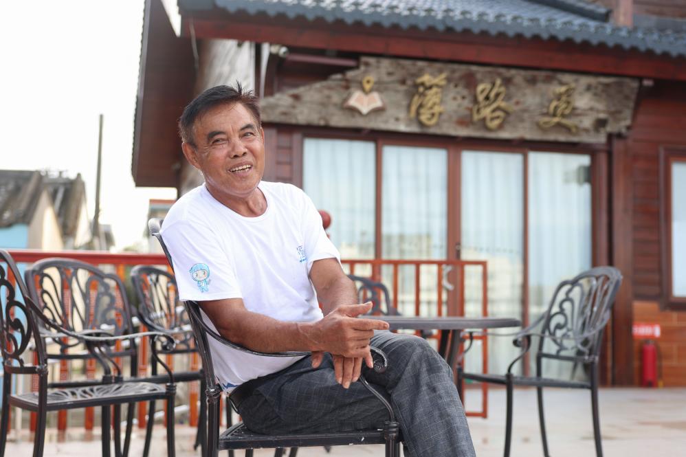 7月22日,在海南省琼海市,王书保站在更路簿博物馆外。