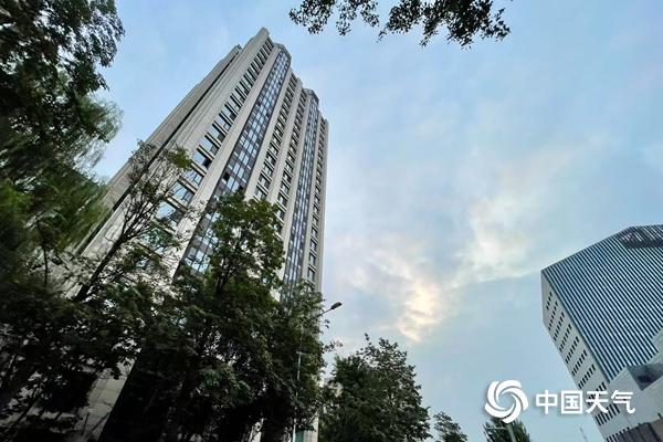 今晨,北京天空云量较多。(图/中国天气网 王晓)