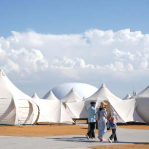 “我们以帐篷为媒介搭建欢迎各地游客来到宁夏、来到沙漠里进行社交的平台。”中卫市旅游和文化体育广电局副局长马姗丹说。