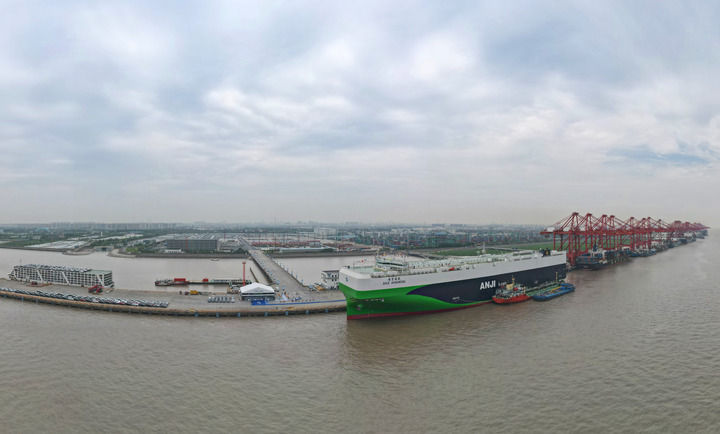 上海外高桥的海通国际汽车码头上,作业繁忙。每天平均有近4000辆中国制造汽车从这里启程,驶向全球市场。