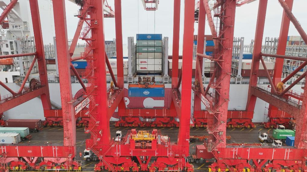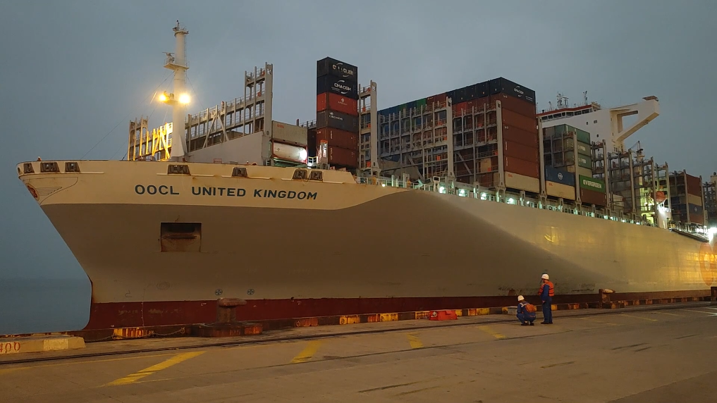 10月18日凌晨,中国香港籍“东方英国”轮载运着第八届中国国际进口博览会南非特色展品靠泊洋山港。上海边检机关联合口岸单位强化口岸通关保障,助力进博展品安全高效入境布展。