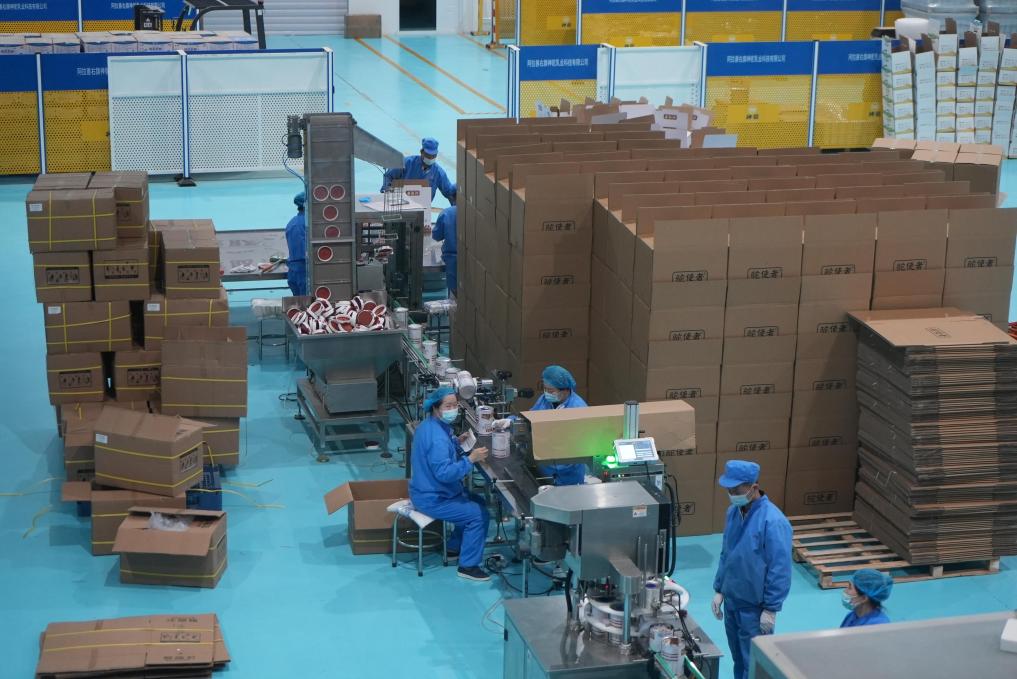 阿拉善右旗神驼乳业科技有限公司的工人将驼乳制品装箱。(受访对象供图)