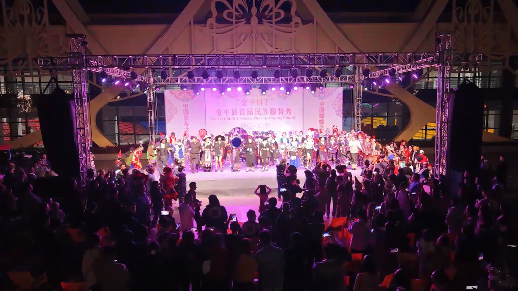 11月9日晚,云南金平县举办首届“金平村T”民族服装秀,来自全县5至68岁的200余名群众自信登台走秀。