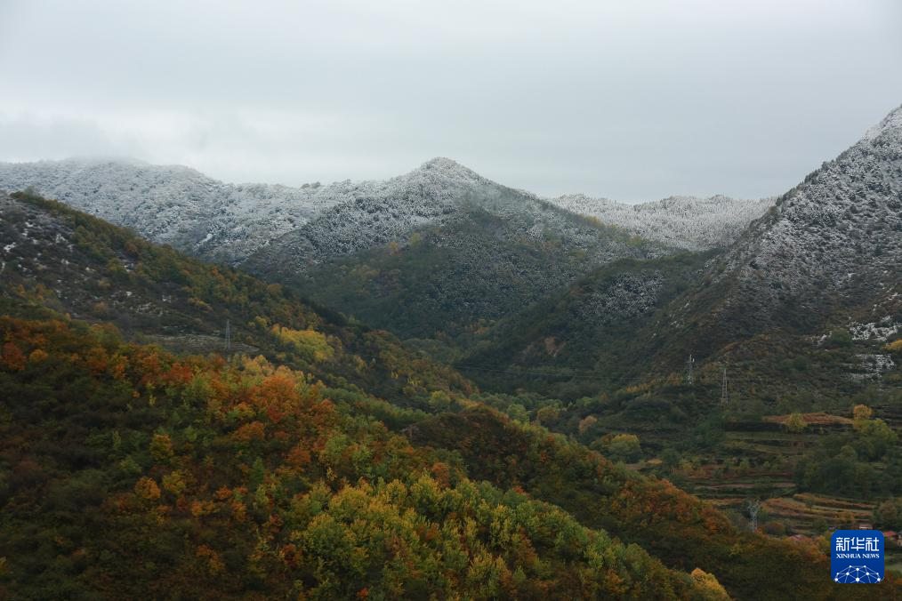 这是2025年10月17日在平凉市崆峒区拍摄的太统崆峒山国家级自然保护区深秋初雪景色。新华社发(吴希会摄)