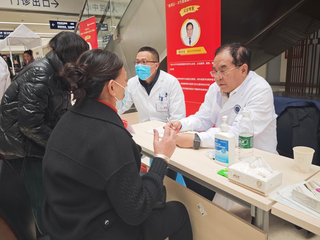义诊现场,四川大学华西医院心理卫生中心主任医师唐向东正在为基层群众看病。新华社记者刘祯 摄