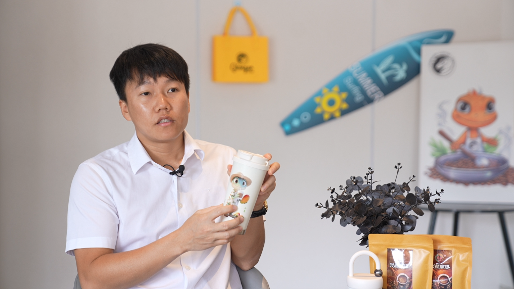 “琼尔咖啡”的品牌形象是一只“雷公马”,“雷公马”是海南人对当地常见的蜥蜴一种本土叫法。“我从小经常见到这种小动物,它象征着善良、真诚和热情,就像很多朴实的海南人一样。”符家史说。