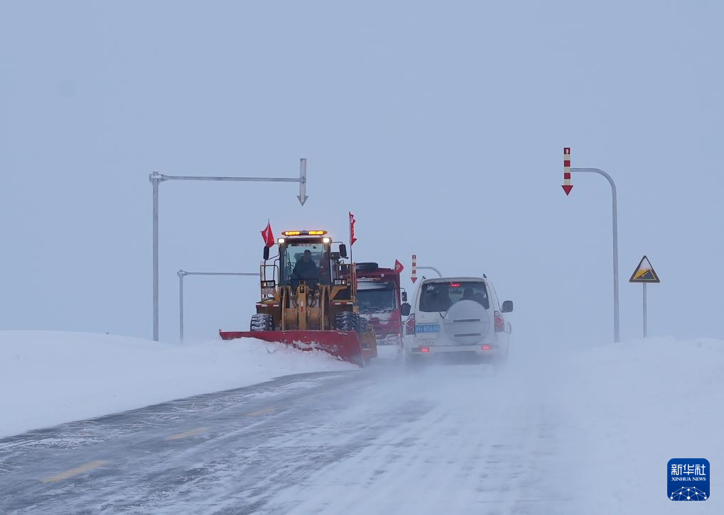 1月13日,新疆阿勒泰公路事业发展中心工作人员驾驶清雪车在辖区公路上除雪。新华社发(毛林别克·胡尔买提汗 摄)