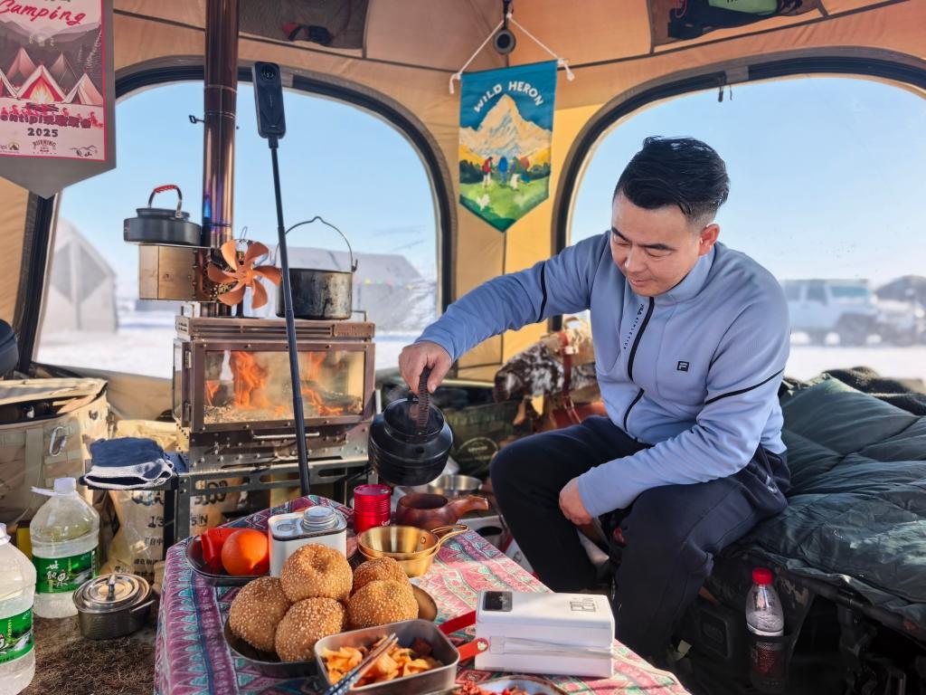 小小的帐篷内,暖炉将温度拉升至十几摄氏度。一帘之隔,是零下30摄氏度的严寒与帐内的如春暖意。“这里比我想象中更安静、更纯粹。这次我是‘先遣队’,下次一定要带上家人一起来。”他说。