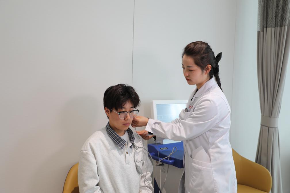 1月14日,兰州大学第一医院康复医学科的主管护师张先(右一)使用仪器为患者进行检测。新华社记者张智敏 摄