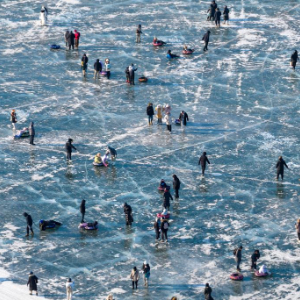 1月1日,游客在松花江哈尔滨段江面游玩(无人机照片)。新华社记者 张涛 摄