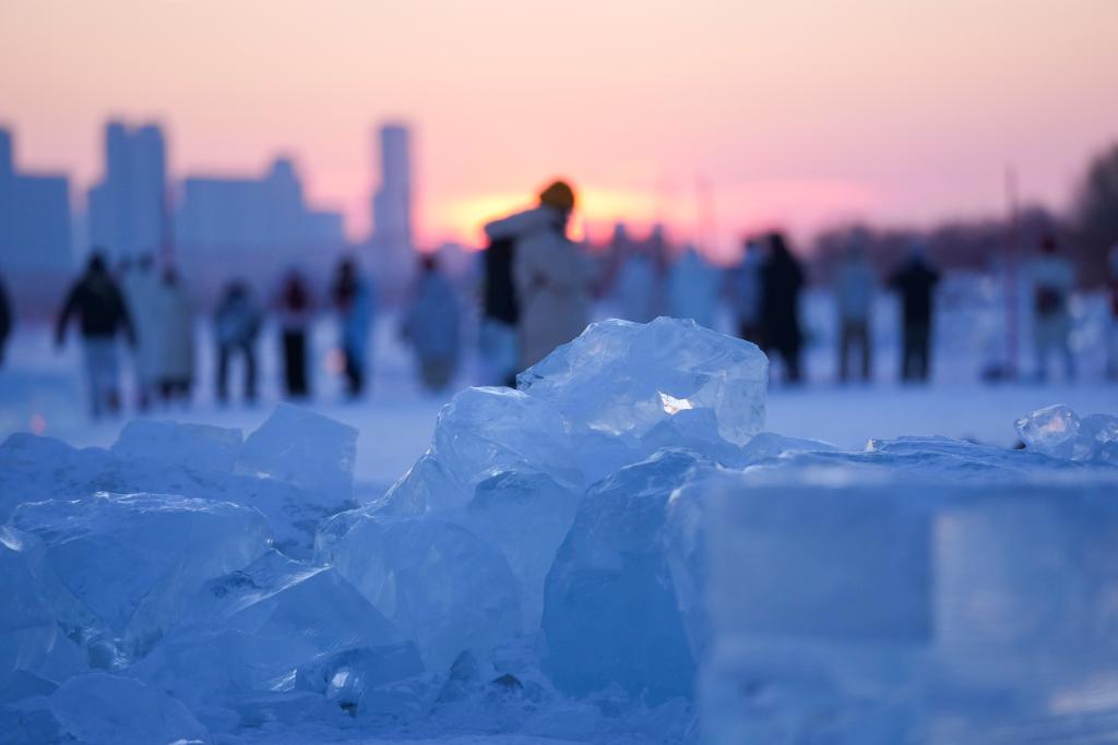 1月10日,游客在松花江哈尔滨段江面上跳舞。新华社记者 王建威 摄