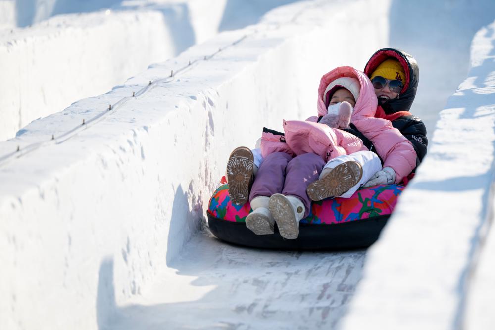 1月1日,人们在2026第八届哈尔滨松花江冰雪嘉年华园区内体验冰雪娱乐项目。新华社记者 张涛 摄