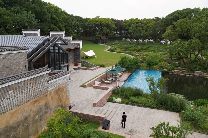 这是2025年7月11日在江西省上饶市广信区望仙乡拍摄的望仙谷景区。望仙谷景区过去曾是花岗岩板材生产基地,长期无序开采导致植被破坏。之后当地政府一次性关闭所有石材加工厂,通过生态修复,将这里打造成一个集山水人文景观、民俗体验、活动演艺于一体的度假旅游区。新华社记者 刘金海 摄