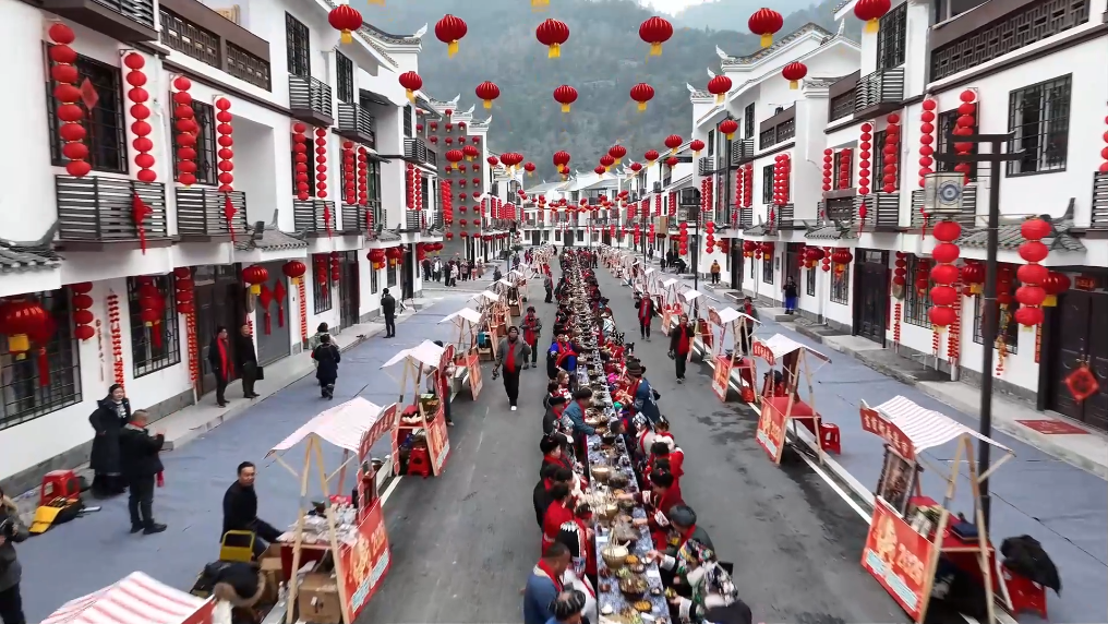 从昔日库区到现代化安置“新城”,从分散居住到团圆相聚,苗族同胞们用隆重的民俗礼仪,庆贺新生活的开启,更以“咬春”的传统习俗,在长桌宴上定格春的生机与团圆的温情。