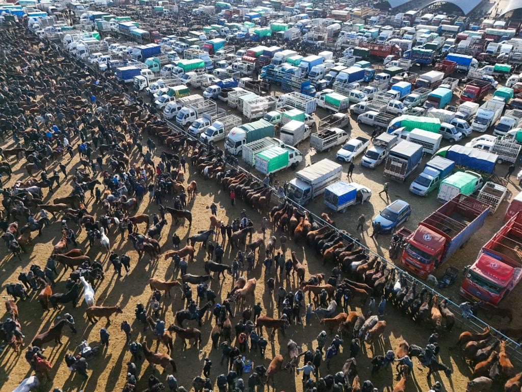 作为新疆活畜产品交易价格的“晴雨表”,如今这座牛羊巴扎,占地面积超过600亩,可同时容纳约2.5万头(只)活畜交易。随着交易需求量增加,自2020年起,交易日由原来的每周三,增加为周一、三、五三个交易日,每周成交额约2亿元,同时还带动了运输、餐饮、住宿等大量就业。
