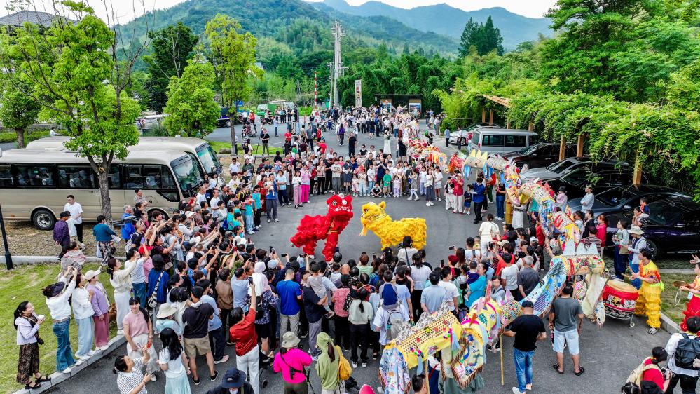 2025年5月31日,一场融合传统底蕴与现代创意的端午游龙会在青山村精彩上演,舞狮表演更是吸引了众多村民游客驻足观看。(受访者供图)