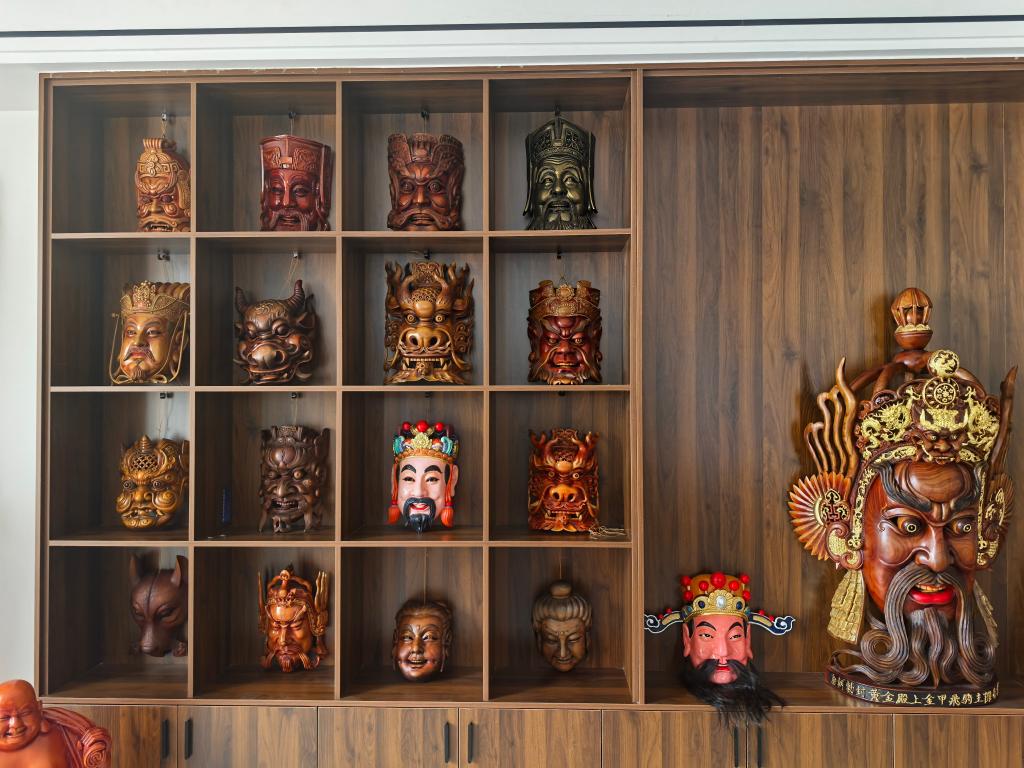 图为彭国龙雕刻的傩面具收藏品。新华社记者 张东阳 摄