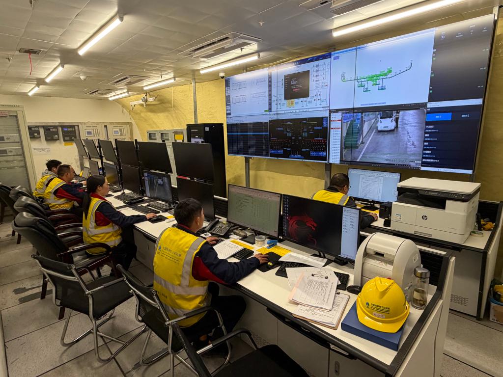 锦屏地下实验室管理局控制中心,运维人员24小时值守。新华社记者薛晨 摄